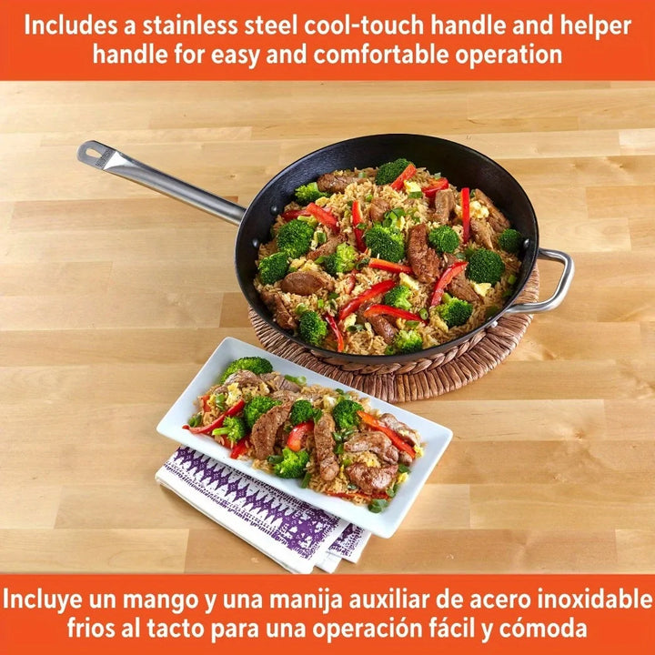 COOKING SURFACE: The 14 inche size is ideal for cooking large meals, providing ample space for stir frying meats, fish, vegetables, poultry, and rice, making it perfect for family dinners and gatherings