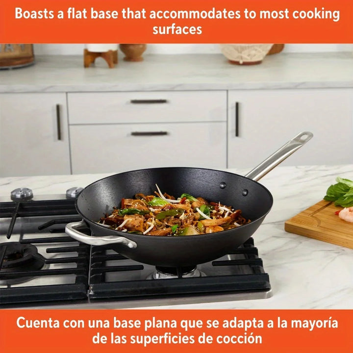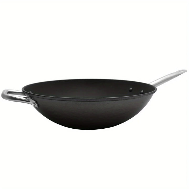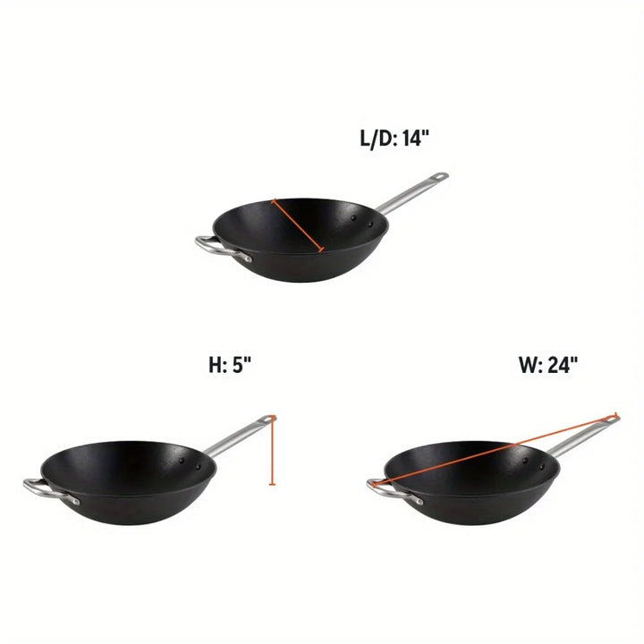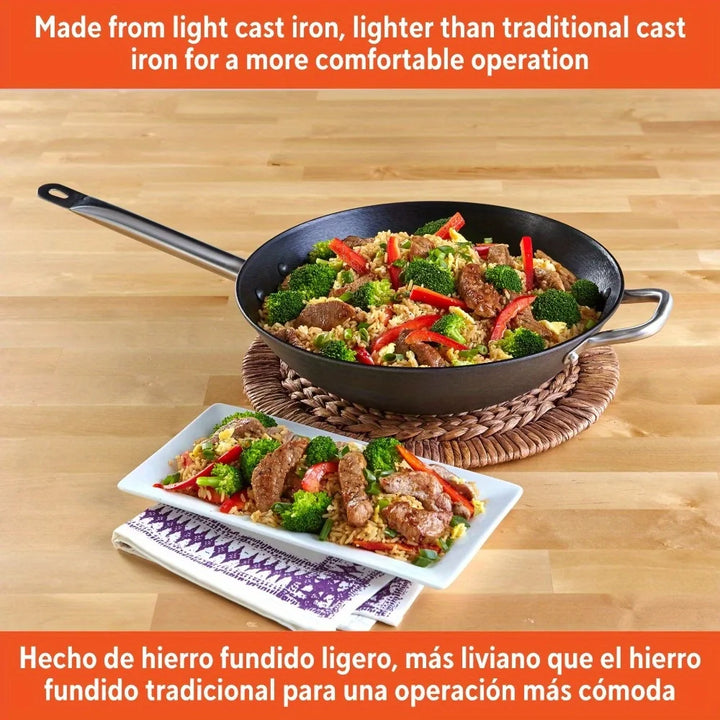 14in Light Cast Iron Preseasoned Wok with Stainless Steel Handle