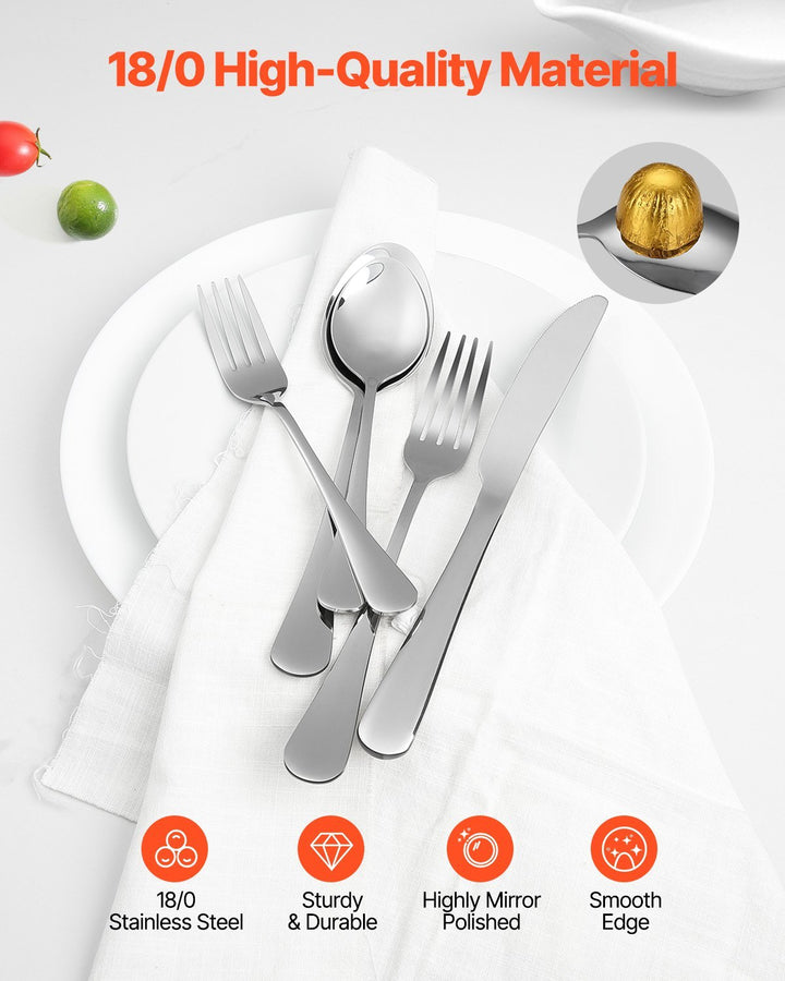 High-Quality Stainless Steel: Made from premium 18/0 stainless steel, this tableware cutlery set is durable, corrosion-resistant, and rust-proof with excellent balance. The smooth-edged design ensures comfort during use. Dishwasher safe and perfectly weighted, it is designed for long-lasting use