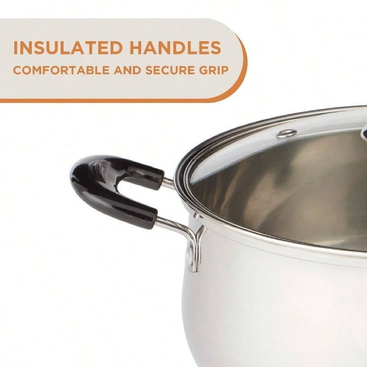 Simmer, boil, and create delicious homemade meals with 43QT Stainless Steel SaucepotWith its versatile 22cm size and durable construction, this saucepot is your go-to making rich soups, hearty stews, savory sauces, and glazeshigh-quality stainless-steel body offers excellent heat distribution even cooking, helping you achieve smooth textures and deep flavors every timeDesigned everyday comfort, this pot features insulated, stay-cool handles safe and easy handling, even when hot tempered glass lid lets you keep an eye on your food as it cooks—no need to lift lid and lose heat or steamCompatible with all stovetops including induction, Saucepot is built convenience, performance, and lasting durabilityWhether your meal prepping week or cooking up a family favorite, this pot delivers consistent results you can count on