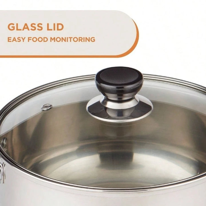 4.3QT Stainless Steel Saucepot with Glass Lid 22cm Saucepan Soups Induction Compatible Sauces Simmering