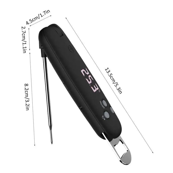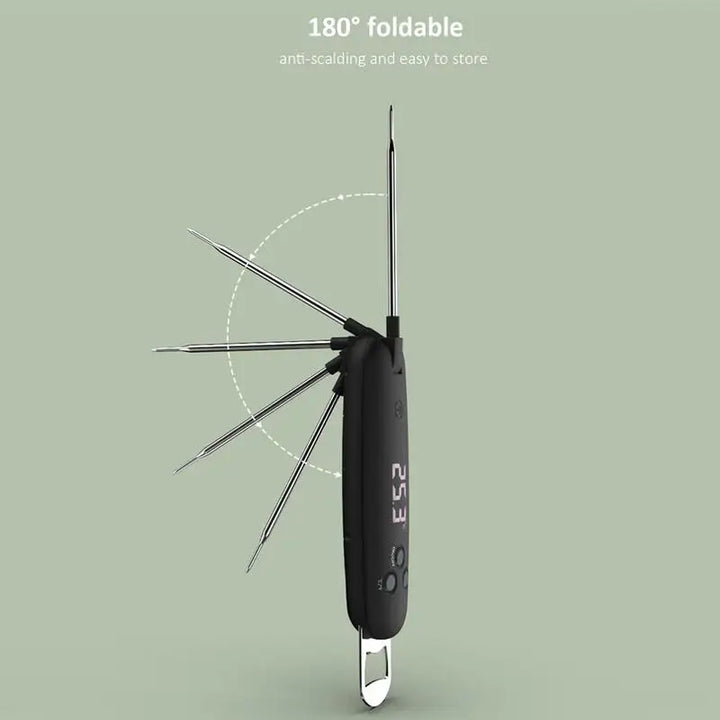 4.Portable Design: Improve your cooking game with our food thermometers that provides effortless precision. With its foldable design, it makes it an ideal kitchen companion for meat lovers. Its portability and convenience make it perfect for outdoors cooking and easy to store, carry, and save space.