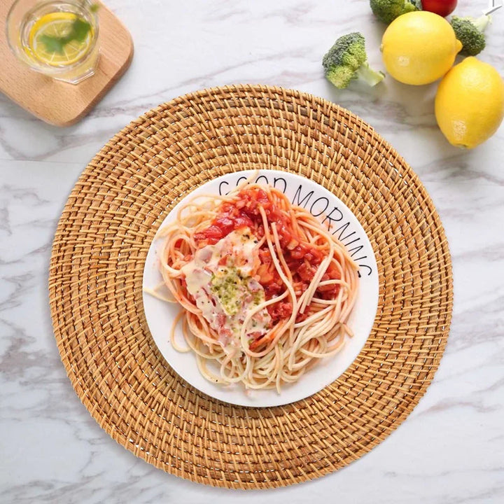 Handwoven Rattan Placemats,Round Wicker Table Mats, Natural Woven Placemats For Dinner Table,Heat Resistant Mats