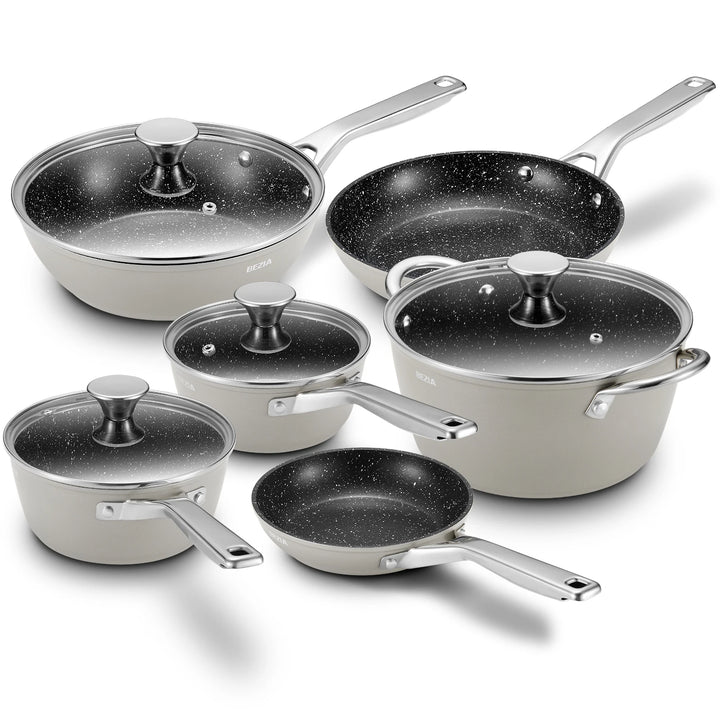 Induction Cookware Nonstick, 10-Piece, BEZIA Pots and Pans Set for Induction Cooktop, Compatible with All Stoves