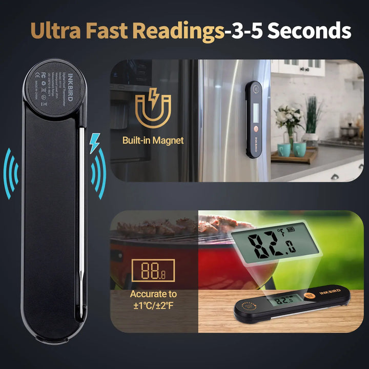 INKBIRD Waterproof Digital Meat Thermometer Backlight Folding Barbecue Kitchen Cooking Instant Readin Thermometer For Grilling
