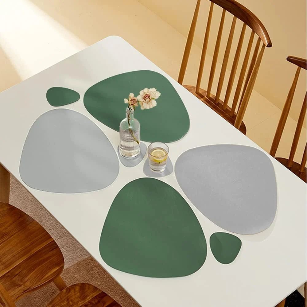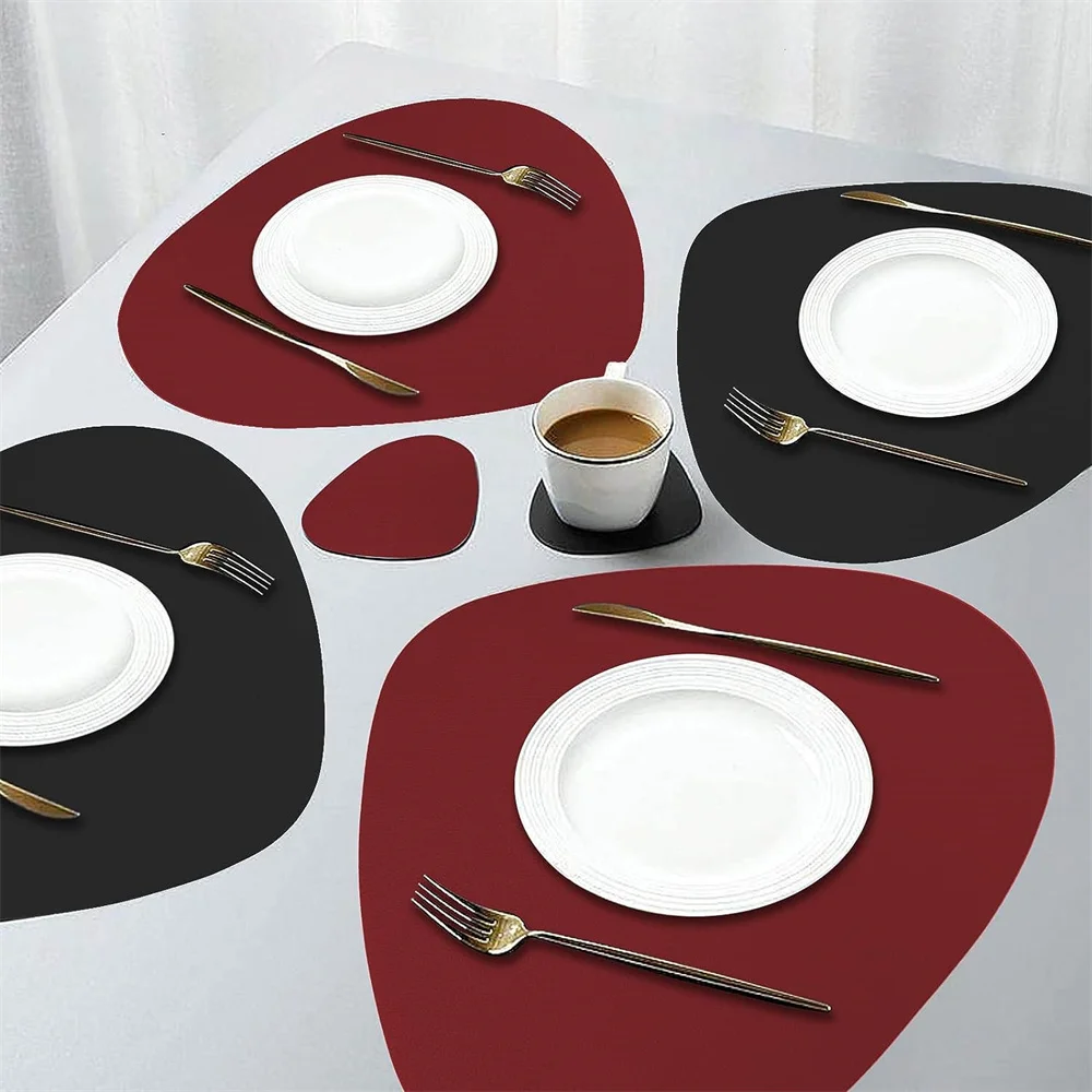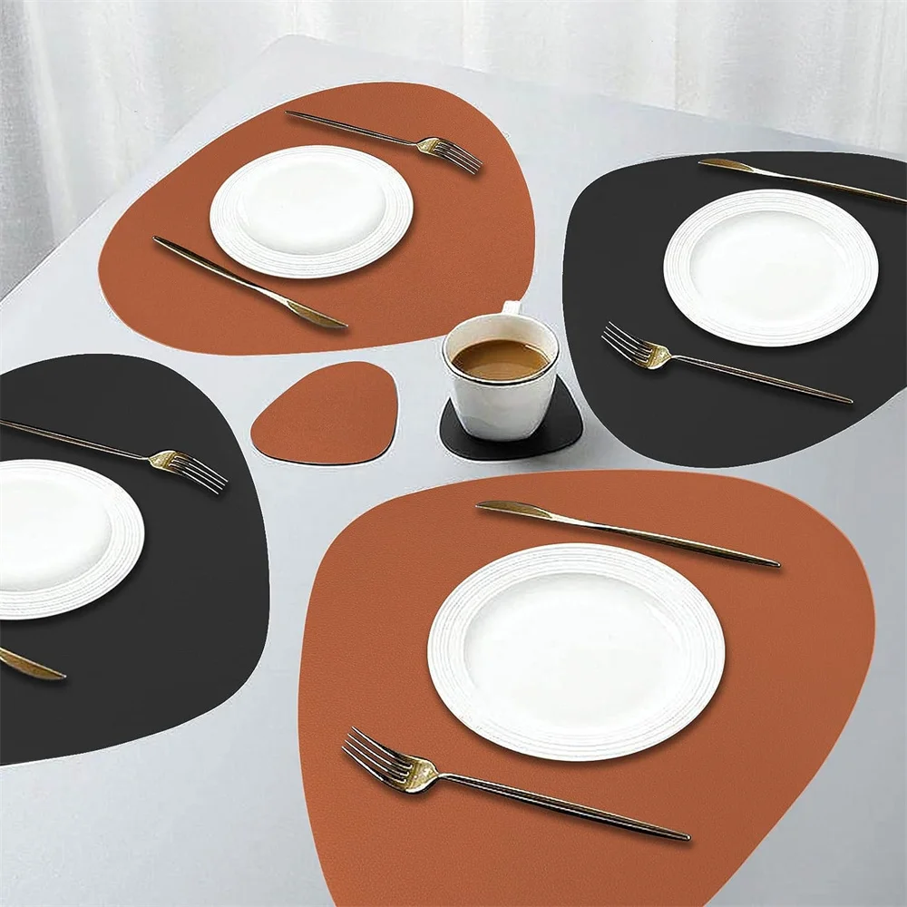 Irregular Shape PU Leather Placemats Set Oil-Proof Waterproof Dual-Sided Place Mats for Kitchen Bistro Tables Bars Coffee Shops