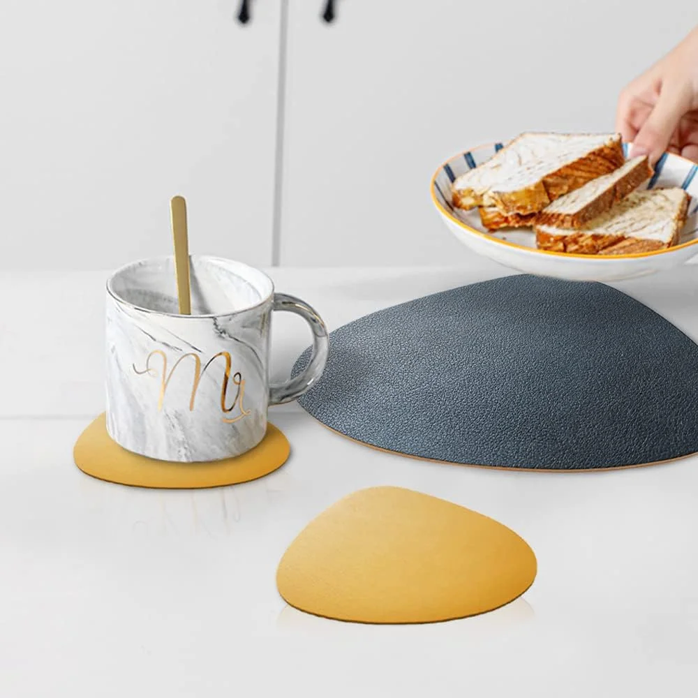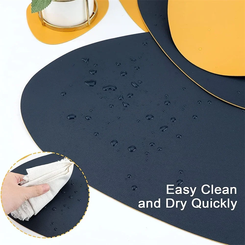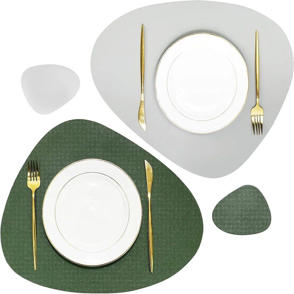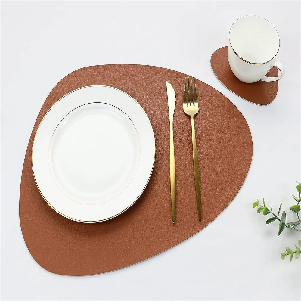 Irregular Shape PU Leather Placemats Set Oil-Proof Waterproof Dual-Sided Place Mats for Kitchen Bistro Tables Bars Coffee Shops